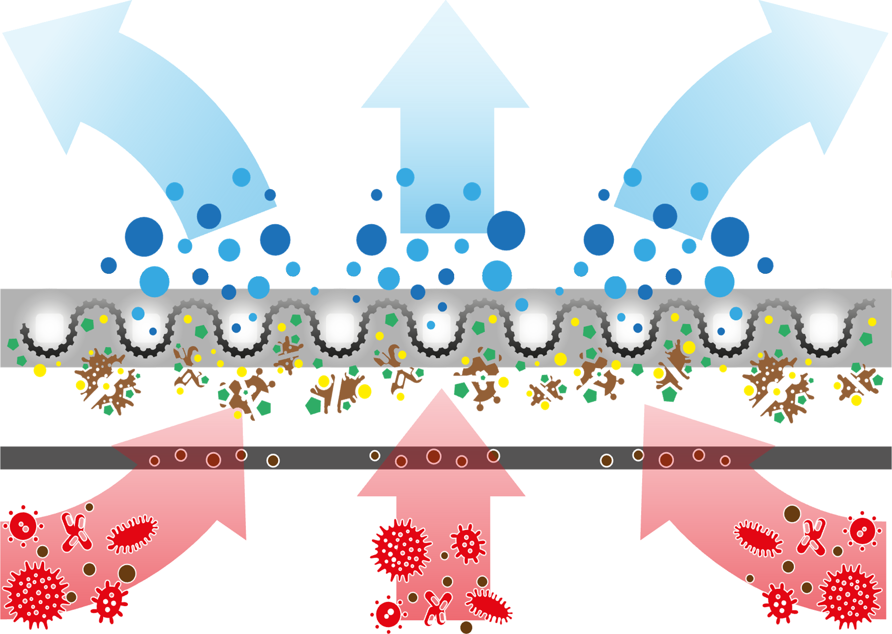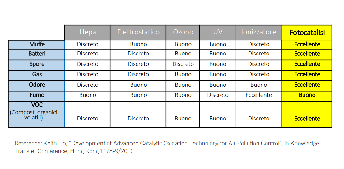 Miliardi di queste specie altamente ossidanti sono create in miliardesimi di secondo e lavorano per disgregare la materia a livello molecolare. Il risultato è una efficace decomposizione delle sostanze inquinanti organiche e inorganiche (assimilabili a tutte le polveri sottili PM2.5 – PM10), dei microbi, dei virus, degli ossidi di azoto, degli aromatici policondensati, dell’anidride solforosa, del monossido di carbonio, della formaldeide, del metanolo, dell’etanolo, del benzene, dell’etilbenzene, del monossido e del biossido di azoto, etc.